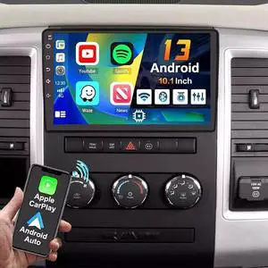 for Dodge Ram Radio 2009-2012 1500 2500 Compatible Jeep 2005-2011, Dodge 2006-2014,Chrysler 2005-2010 Stereo 10.1" IPS Touchscreen Built-in CarPlay Andriod Auto Bluetooth Head Unit (4GB+64GB)