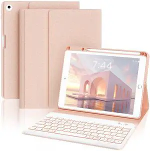 OPAKIT Keyboard Case for iPad Air-2 9.7 Inch 2014, 7-Color Backlit Detachable Wireless with Pencil Holder, Stand Folio Cover for 6th 5th Generation 2018/2017, Pink