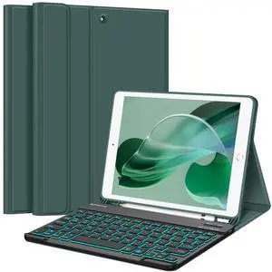 FINTIE Backlit Keyboard Case for iPad 9th / 8th / 7th Generation (2021/2020/2019) 10.2 Inch, Soft TPU Back Cover with 7 Colors Backlight Magnetically Detachable Bluetooth Keyboard, Midnight Green