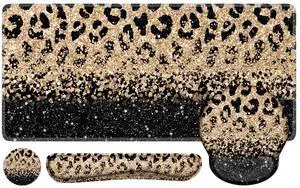 iLeadon Mouse Pad Set, Desk Mat + Mouse Pad with Wrist Rest + Keyboard Wrist Rest + Coaster, 4in1 Leopard Mouse and Keyboard Pad Set for Home Office, Black Gold Leopard