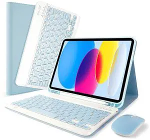 Touch Keyboard Case for iPad 9th Generation (10.2", 2021), 10 Color Backlight, 360 Slim Cover, Bluetooth Keyboard with Pencil Holder, Compatible with iPad 8th Gen 2020, 7th Gen 2019, Light Purple