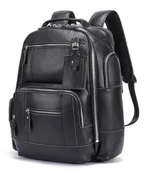 LANNSYNE Leather Backpack for Men, 15.6" Laptop Backpack Camping Travel 24L Rucksack