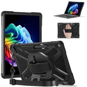 Junfire Protective Case for Microsoft Surface Pro 12 (2025), Shockproof Surface Pro12 Case with 360Rotating Stand/Hand Strap/Stylus Holder/Shoulder Belt, Compatible with Type Cover Keyboard-Black