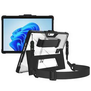 AOAO Clear Case for Microsoft Surface Pro 8, Rugged Protective Cover with Shoulder Strap, Hand Strap, Stylus Pen Holder, Extra Stand for Education and Business Office Black