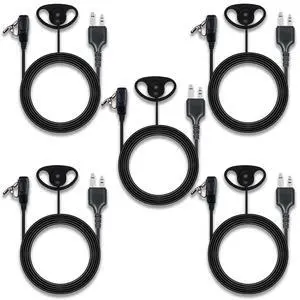 Zovfam D-Ring Earpiece for Midland 2 Way Radios, Walkie Talkie Headset with Mic PTT, Compatible with GXT1000VP4 LXT600 LXT500, Soft Rubber Over-Ear Hook for Security Retail Hunting, 5 Pack
