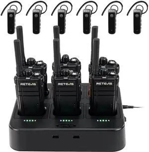 Retevis RB37 Bluetooth Walkie Talkies with 6-Way Charger,Wireless Two Way Radio with Earpiece,Flashlight,2000mAh for 21-Hours,Type-C,Business 2 Way Radios for Security Hospital Retail Church(6 Pack)