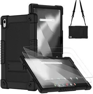Kebiory for Walmart Onn 12.1 inch Tablet Pro 2024 Model Case/Onn 12.1 inch Tablet Pro(100146663) Case Kids Friendly with Shoulder Strap Stand 2Pcs Tempered Glass Screen Protector (Black+2Pcs)