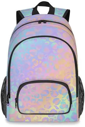 GzLeyigou School Backpack Casual Bookbag with Multiple Pockets 18 inch Laptop Backpacks for Travel Hiking, Schoolbag for Students Girls Boys Women Men, Colorful Leopard Print