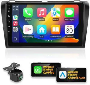 Crownyu for Mazda 3 Radio Compatible with Wirelessly Carplay Android Auto Upgrade Android Car Stereo Bluetooth Navigation Touchscreen GPS FM Multimedia Player Backup Camera Head Unit (2004-2009)