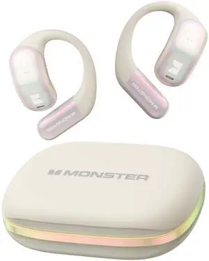 Monster Open Ear AC210 Headphones, True Wireless Bluetooth Earphones with Microphone, Wireless Headphones 30 Hours Playback, Type-C Charging, Touch Control, IPX5 Waterproof Open Ear Earbuds,White