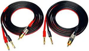 CNCESS CESS-024-6f Speaker Cable with RCA Plug to 4mm Banana Plug, Pure Copper Gold-Plated Connectors, 400 Strands Tinned Copper Wire, Soft Silicone Rubber Cable (14AWG 6 Feet)