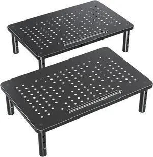 ELIVED 2 Pack Monitor Stand Riser - 3 Height Adjustable Monitor Stand for Laptop, Computer, PC, Printer, Mesh Metal Monitor Riser for Desktop Organizer.