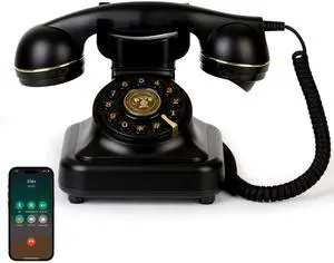 Vintage Bluetooth Phone, Retro Desk Telephone with Gold Accents, Loud Nostalgic Ringtones, Bluetooth Connects to Smartphone for Home & Office, Black