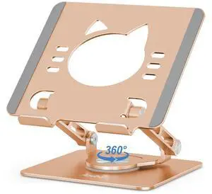 Aoviho Tablet Stand 360 Rotating Aluminum Holder, Adjustable, Portable and Foldable Monitors Stand for iPads, Compatible with 4-12.9" Tablets, Golden