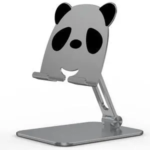 Otinlai iPad Stand iPad Holder Adjustable Height and Angle Tablet Stand Folding Tablet Holder Cell Phone Stand Aluminum, Suitable for Tablets and Cell Phones (Gray Panda Style)