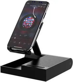 DOSS Cell Phone Stand with Bluetooth Speaker, 15W Wireless Charger and Anti-Slip Base,4-in-1 Function, 8H Playtime, Adjustable Holder, Compatible with Tablet
