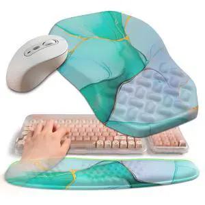 Gleamtide 2-in-1 Ergonomic Set, Wave Keyboard Wrist Rest and Massage Slope Mouse Pad Wrist Support, Rebound Memory Foam for Relieve Carpal Tunnel Syndrome and Wrist Pain (Green Gold Marble)