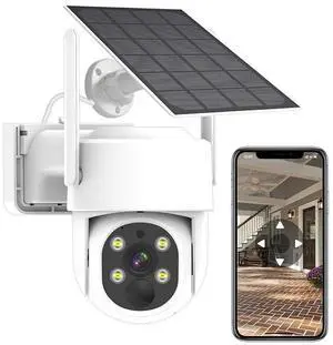 ZHXINSD PTZ Security Camera Wireless Outdoor Solar Powered, Pan Tilt 360 Security Camera Waterproof Two Way Audio Color Night Vision Compatible with Alexa Compatible Camera System