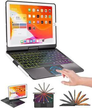 BABG Keyboard Case for iPad 9th Generation, 360 Rotatable Backlit Keyboard with Pencil Holder for 10.2 inch iPad 9th Gen 2021/ 8th Gen 2020/ 7th Gen 2019 and iPad Air 3 / Pro 10.5" -Matt Black