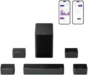 ULTIMEA 5.1 Sound Bar for Smart TV, Virtual Surround Sound System for TV, 320W Peak Power, Adjustable Surround Speakers and Subwoofer, APP Control, Home Theater Soundbar Poseidon D50(2025 New Model)