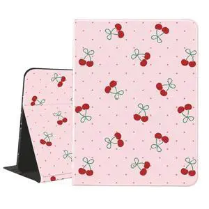 AdorableWhimsy Cute Cherry Printed Case for iPad 9th/7th/8th Generation(2021/2020/2019, 10.2 Inch) with Pencil Holder Folio Girly Pink Leather Cover Multi-Angle Viewing Stand Case Auto Sleep/Wake