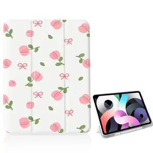 AdorableWhimsy Aesthetic Bow Case for iPad Air 11" M2/M3(2024/2025)/iPad Air 4/Air 5 10.9" with Pencil Holder Folio Girly White Leather Cover Multi-Angle Viewing Stand Case Auto Sleep/Wake