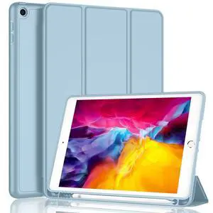 iMieet iPad 9.7 Case (2018/2017 Model, 6th/5th Generation), Smart Cover with Pencil Holder and Soft Baby Skin Silicone Back and Full Body Protection, Auto Wake/Sleep Cover (Light Blue)