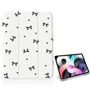 OFQKOAKS Black Bow Heart Case for iPad 11 Inch (A16) 11th 2025/iPad 10.9 Inch 10th Gen 2022,[Pencil Holder+Auto Sleep/Wake],Slim Trifold Stand Protective Cover with Soft TPU Back,White