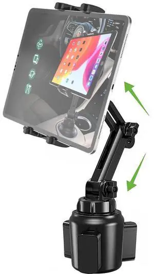 Cuxwill Car Cup Holder Tablet Mount for 4-13" iPad & Phone, Universal Truck Cup Tablet Mount with Adjustable Arm for iPad Pro 12.9 9.7 Air Mini, Samsung Galaxy Fold 4 3, Kindle Fire HD, iPhone etc