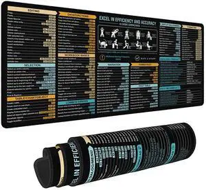 Lucocia Excel Cheat Sheet Mouse Pad, Extra Large Office Keyboard Shortcuts, Non-Slip XL Desk Mat (Black)