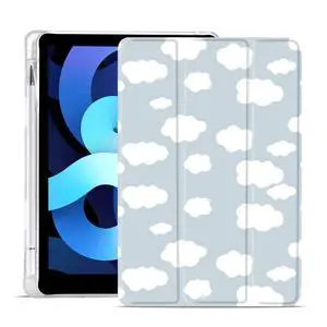 MAYCARI White Cloud Case for iPad Air5/Air4 with Pencil Holder, Cute for iPad 10.9 Inch 2022/2020 Protective Case with Soft TPU Back, Auto Sleep/Wake Cover Slim Shell