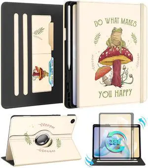 Kidcube for Samsung Galaxy Tab A9 Plus Case 11 Inch - for Women Girls Kids Cute Rotating Stand Folio Cover with Pencil Holder & Card Slot Cool Frog Mushroom Design for Samsung A9 Plus Tablet Cases