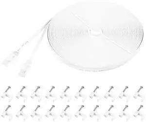 MECCANIXITY Cat 6 Ethernet Cable 82ft, 32AWG 250MHz Flat High Speed RJ45 Cat6 Internet Network Patch Cord with Clips for Computer, Gaming, Router, Modem, White