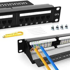 Patch Panel 24 Port Cat6 RackmountEC Listed 1U 19 inch Network Patch Panel RJ45 Patch Panel for 10 Gigabit Network 110 or Krone Impact Tools Compatible (Cat6 24 Port Patch Panel)