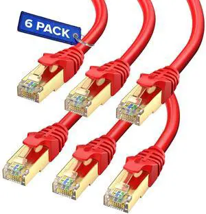 Maximm Cat7 Ethernet Cable 10 Feet 6 Pack High-Speed LAN Network Patch Cords, RJ45 Gold-Plated Connectors, 600MHz, 10Gbps for Router, Modem, PC, Gaming, Streaming Red