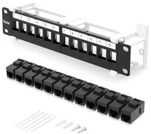 PBAEGAV 12 Port Keystone Patch Panel with Cat6 Keystone Jack 89D Wall Mount Bracket Versatile Vertical Horizontal Installation (12 Port + Cat6 Keystone Jack UTP)