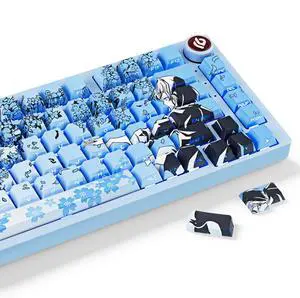 JOLINTAL Blue Anime Keycaps - Side Print Keycaps Set, PBT Japanese Custom Keycap Shine Through Backlit Key Cap, 131 Keys Dye Sub Cherry Profile Keyboard Key caps for Cherry MX Mechanical Keyboard