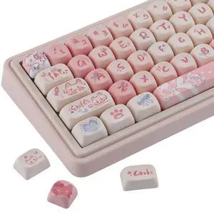 Sunzit PBT Keycaps,125 Keys Rouge Kitten Custom MOA Profile Keycaps, Dye-Sublimation Key caps Keyboard Keycap Set for MX Switches Mechanical Keyboard