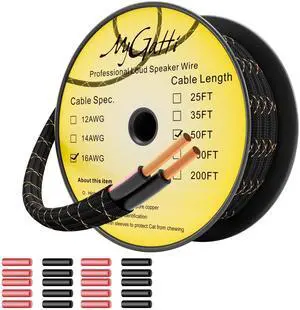 16/2 Speaker Wire 50 Feet, 16AWG Gauge Speaker Cable, Direct Burial, Durable Nylon Braided, in Wall, 2 Conductors, OFC Oxygen-Free Copper, for Car Audio Stereos, Home Theater, Surround Sound, Radio