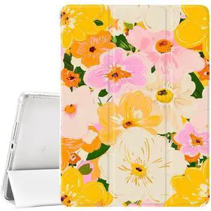 JOYLAND Colorful Flowers Floral Pad Case Cover for 11 Inch iPad Pro 2018/2020/2021 White Case with Pencil Holder Smart Trifold Stand Cover Soft TPU Cover for iPad Pro 11" (2018/2020/2021)