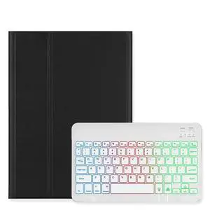 Disonbeir Backlit Keyboard Case for Galaxy Tab S10 Lite/ S10 FE/ S9 FE 10.9", Tab S9/S8/S7 11" Case with RGB Colorful Backlight Detachable Keyboard Cute Candy Color,Black+White