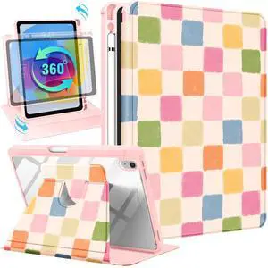 Uppuppy for iPad A16 Case for iPad 10th Generation Case 10.9 inch - 360 Degree Rotating Stand Folio Smart Cover with Pencil Holder for Women Girls, Colorful Checkered for Apple 10th 2022/11th 2025