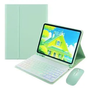 Disonbeir Rainbow Backlit Keyboard Case for Galaxy Tab S6 Lite 10.4" Case with Mouse and 7 Colors RGB Colorful Backlight Detachable Bluetooth Keyboard,Mint Green+White