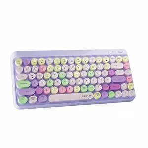 FCPLU x UBOTIE Wireless Bluetooth TKL Keyboard with 84 Retro Round Keycaps, Typewriter-Style, for PC/Mac/Tablets(Purple-Colorful)