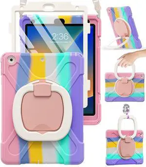 WESOROL Case for iPad (A16) 11th/10th Generation 2025/2022 with Screen Protector Rotating Stand Pencil Holder Shoulder Strap Heavy Duty Shockproof Cover for iPad 10th Gen Case,Colorful Pink