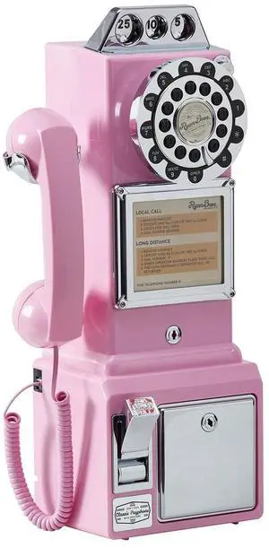 Ryan Bros. American Retro 1950's Payphone with Coin Bank Wall-Mount Corded Phone (Pink)
