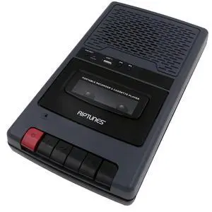 Riptunes Portable Cassette Recorder Player, Tape to USB Audio Music Digital Converter, Retro Shoebox Tape Recorder with USB Player, Cassette-MP3 Converter w/Built-in Microphone -Grey