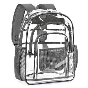 ZORFIN Clear Backpack Heavy Duty for School & Work 17in Transparent PVC Bag with Large Capacity & Reinforced Straps See Through Bookbag for Men, Women, Boys & Girls, Workplace Security - Grey