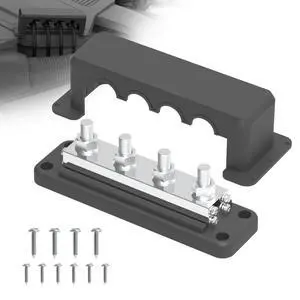 600A Bus Bar 12V Power Distribution Block with 3/8" (M10) 4-Posts Heavy Duty Terminals Block with Cover for Automotive, Marine, Battery System (Black)