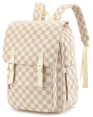 fufazfo Corduroy Laptop Backpack for Women, Fits 15.6 Inch Computer Bag, College High School Bookbag Travel Daypack Purse, Work Business Bags - Corduroy Checkered Brown